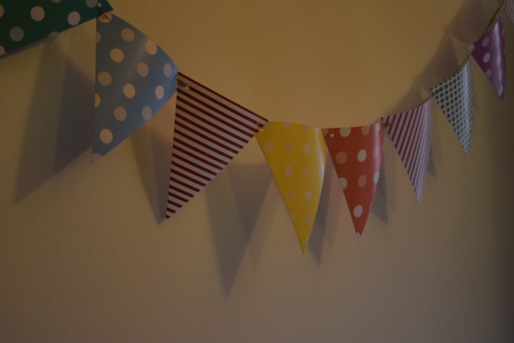 Peppy buntings/ 3-D paper garlands: these add an instant sparkle to the wall and give a festive look. They come in lots of colours and patterns.